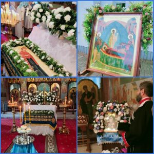 «Там, где двое или трое собраны во Имя Мое, там и Я посреди них.»Тропарь, глас 1: В рождестве́ де́вство сохрани́ла еси́,/ во успе́нии ми́ра не оста́вила еси́, Богоро́дице,/ преста́вилася еси́ к животу́, Ма́ти су́щи Живота́,// и моли́твами Твои́ми избавля́еши от сме́рти ду́ши на́ша.