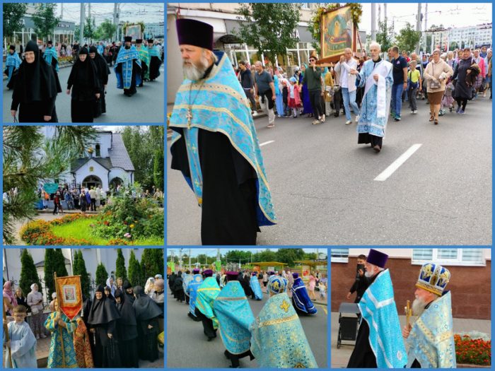 У площади Свободы колонна стала очень широкой, почти на всю ширину дороги. Все люди, и стар, и млад, шли, поднимаясь к Успенскому кафедральному собору, где состоялся ещё Крестный ход вокруг собора, а затем – молебен. По окончании архиепископ Витебский и Оршанский Димитрий, а также председатель облисполкома Александр Субботин поздравили всех с праздником, сказали тёплые слова и пожелания. А после верующие преклонялись перед иконой Успения Божьей Матери.