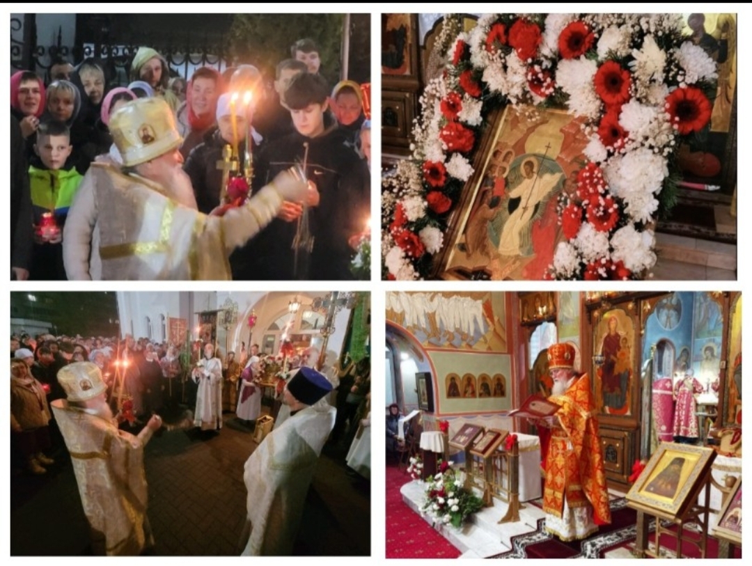 Дорогие отцы, матушки, братья, сестры, дорогие прихожане, поклоняемся вместе с вами Воскресшему Спасителю. Будем верить, что все наши скорби и горести неизбежны на пути к Небесному Иерусалиму и попускаются Господом ради нашего спасения. Восхваляем и прославляем подвиг победы Божественной Любви. ХРИСТОС ВОСКРЕСЕ! Распахнём сердца навстречу Страдавшему, Умершему и Воскресшему нас ради. Сегодня особенно мы чувствуем, как все наполнил Он Собой и Светом Своим жизнь нашу, и преобразит души наши.