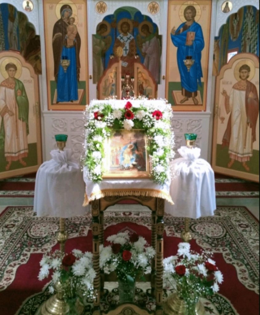 Воскресная песнь, глас 3: Воскресение Христово видевше, / поклонимся Святому Господу Иисусу, / единому безгрешному, / Кресту Твоему покланяемся, Христе, / и святое Воскресение Твое поем и славим: / Ты бо еси Бог наш, / разве Тебе иного не знаем, / имя Твое именуем. / Приидите вси вернии, / поклонимся Святому Христову Воскресению: / се бо прииде Крестом радость всему миру. / Всегда благословяще Господа, / поем Воскресение Его: / распятие бо претерпев, / смертию смерть разруши.
