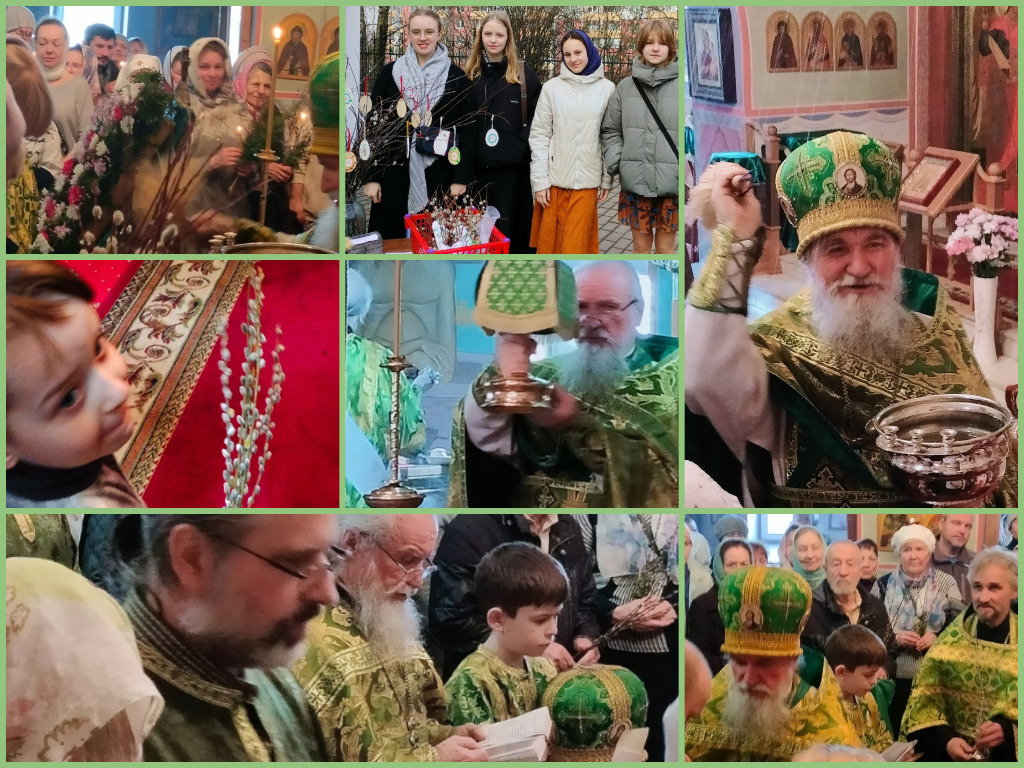 13 апреля 2025 г. Солнечное, очень теплое утро. Снег вдруг исчез, растаял за ночь. Люди идут с вербными букетами в разные храмы, благо их немало в нашем городе. У кого-то – вербочка красная с белыми котиками; кто-то идет встречать Христа белой вербой. При приближении к храму наблюдается оживлённая вербная ярмарка на подходе к храму, а на территории храма – вербная ярмарка, организованная Воскресной школой. Верующие с вербой выстроились в два ряда вокруг всего храма для освящения вербы.