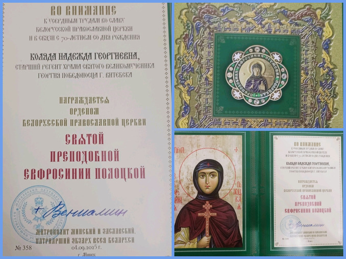 В этот светлый праздник Покрова пресвятой Владычицы нашей Богородицы и Приснодевы Марии, в День Матери от всей души ПОЗДРАВЛЯЕМ ДОРОГУЮ МАТУШКУ НАДЕЖДУ (КОЛЯДА) с Праздниками и награждением её высокой наградой ОРДЕНОМ ПРЕПОДОБНОЙ ЕВФРОСИНИИ ПОЛОЦКОЙ!