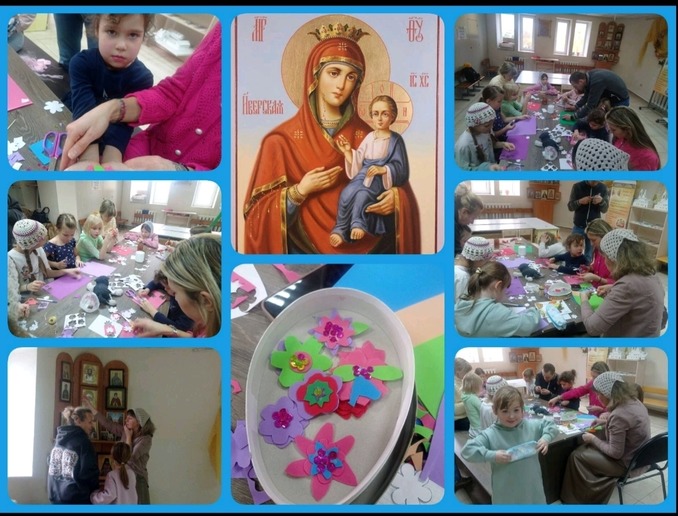 На  занятии 26  октября 2025  г.  в воскресной  школе ребята  узнали историю об Иверской  иконе Пресвятой Богородицы; поговорили о подготовке подарков нашему  храму и  прихожанам, а  затем дети своими  руками создавали  цветы, которыми потом  украсят  открытки.